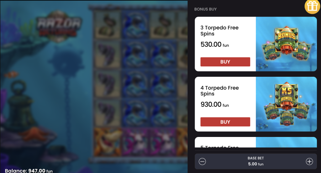 - Razor Shark: kein Bonus Buy, alle Features müssen erspielt werden
