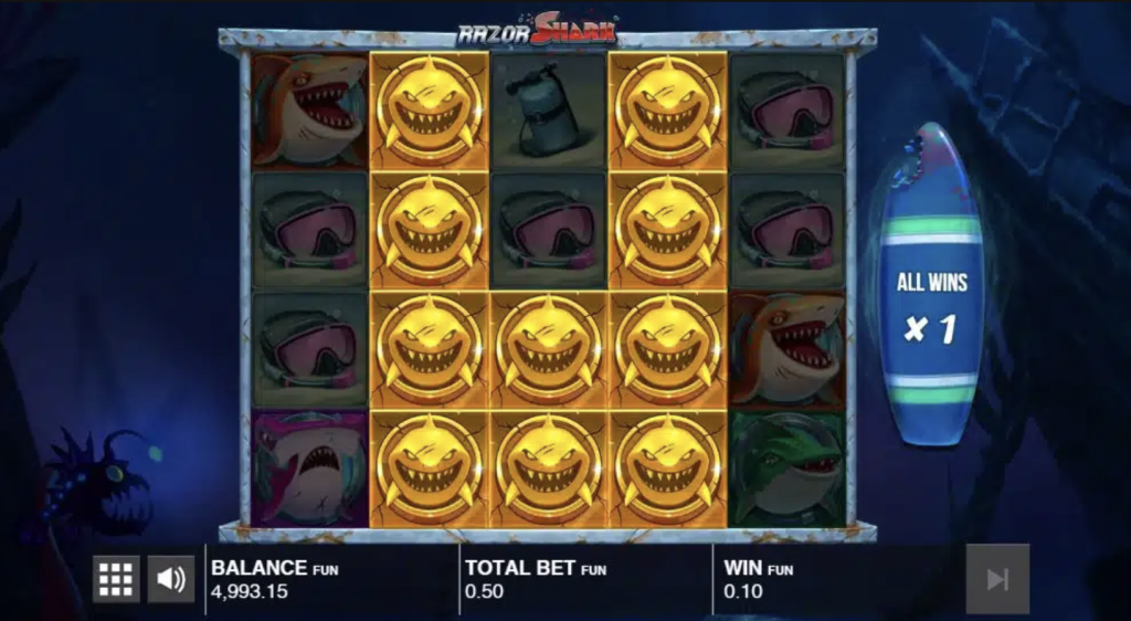 | Golden Shark (Bonus-Einstieg) | selten | sehr hoch | Der interessanteste, aber seltenste Ausgang: eröffnet den Weg zu Razor Reveal – der einzigen Zone, in der echte Big Wins und Max-Win-Szenarien realistisch entstehen. |